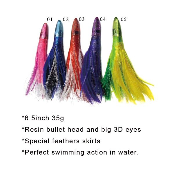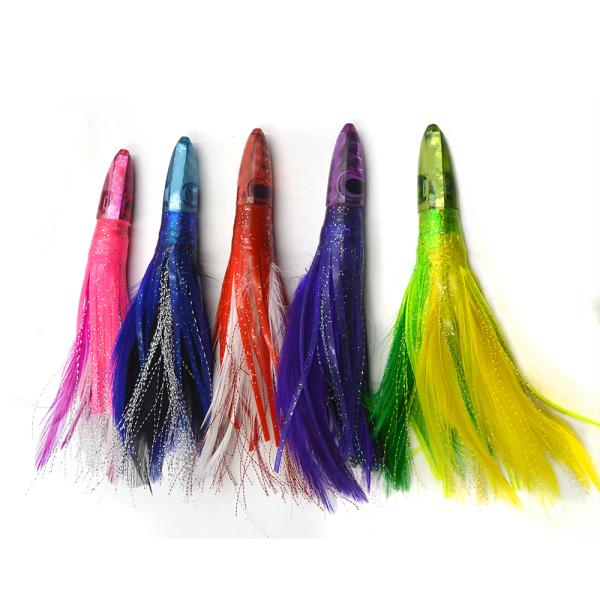 Resin head soft octopus skirt With feather bait tuna sea trolling fishing lure 6.5 inch /35g Images |